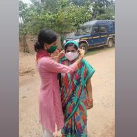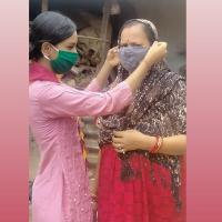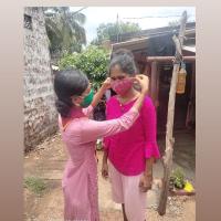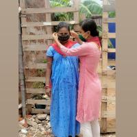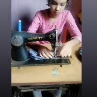 My aunt does sewing and i make masks with her help. We made masks from the clothes left over from the clothes that come for sewing.