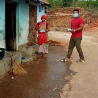 One vehicles fully loaded with boxes of soaps and masks leave the team at 7.00am in the morning and are taken to the four distribution points established around Pokharibandha Gram Panchyat name as irkuli,Melagutu,Jarenpata,Karlakupa. At each point a team is already waiting to receive the items, and quickly supply them . We are going door-to-door distributing soaps and masks to the villages. People in my area live very close to each other, and there are obvious risks of spread of COVID-19,” s as a distribution point. “This distribution is providing people with ways to protect themselves and also increasing their knowledge about the virus.”