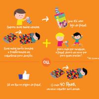 Foi feita uma campanha de arrecadação de meias usadas, velhas, furadas, sem par, que não servem mais. Os jovens tiveram um mês para fazer essa mobilização e levar as meias na sede do grupo.
