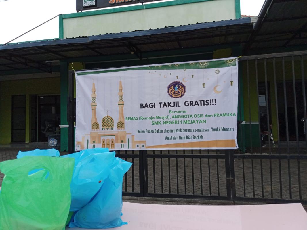 kegiatan bagi takjil gratis bersama Remas (remaja masjid), anggota osis dan pramuka SMK NEGERI 1 MEJAYAN sebelum kegiatan terlaksana dari anggota yang terlibat kita koordinasi terlebih dahulu,kemudian kita mengajukan profosal untuk diajukan ke bendahara sekolah ,dan kemudian kita jalankan kegiatan yang sudah kita rencanakan dan kita agendakan kegiatan pada bulan suci ramadhan,target kita tidak hanya di umat islam saja melainkan di umat beragama yang lainnya