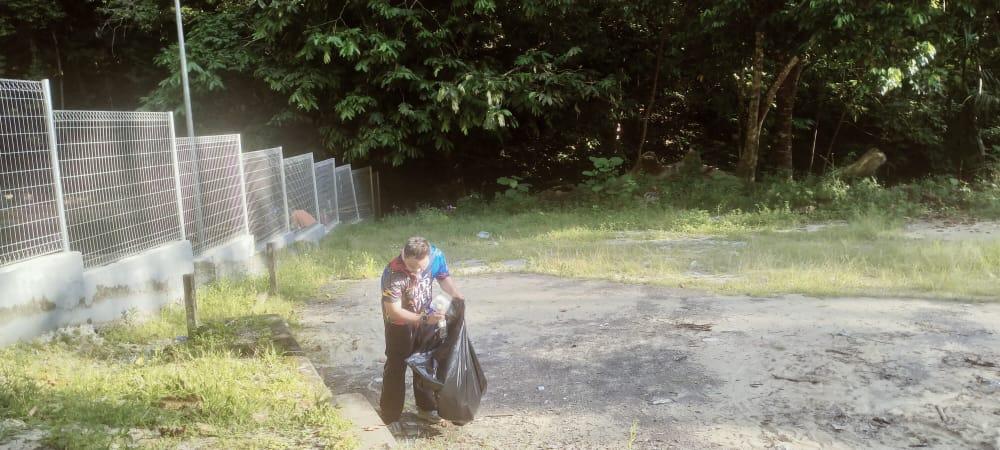 Saya menjalankan seorang diri dengan membersihkan kawasan rekreasi Berhulu Camp Serting Ulu, Jempol Negeri Sembilan