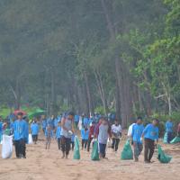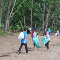 Yang terakhir, Melakukan pembersihan pantai bersama sama
