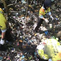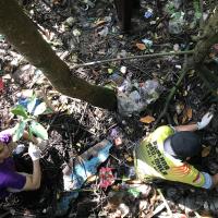 Membersihkan Sampah di Tempat Wisata Mangrove