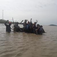 Kami berkumpul di lokasi untuk belajar tentang mangrove dari penduduk setempat dan menyiapkan bibit mangrove yang akan di ranam