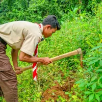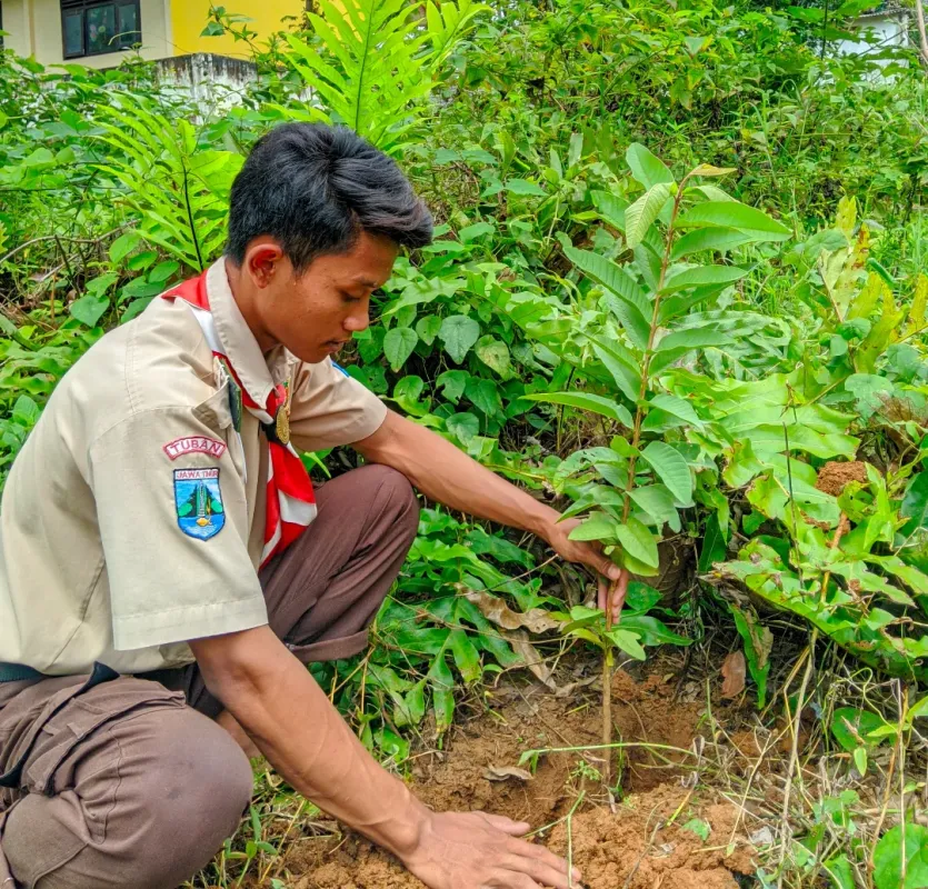 Kami berjumlah 4 orang Pramuka melakukan reboisasi dengan cara melakukan penanaman tumbuhan dan menjaga kesuburan tanaman tersebut Melalui piket penyiraman dan pemupukan dan melakukan stand by selama 2 jam setiap 1 jam bergantian orang dilakukan setiap hari.kami melakukan ini karena rumah kami dekat dengan reboisasi tersebut