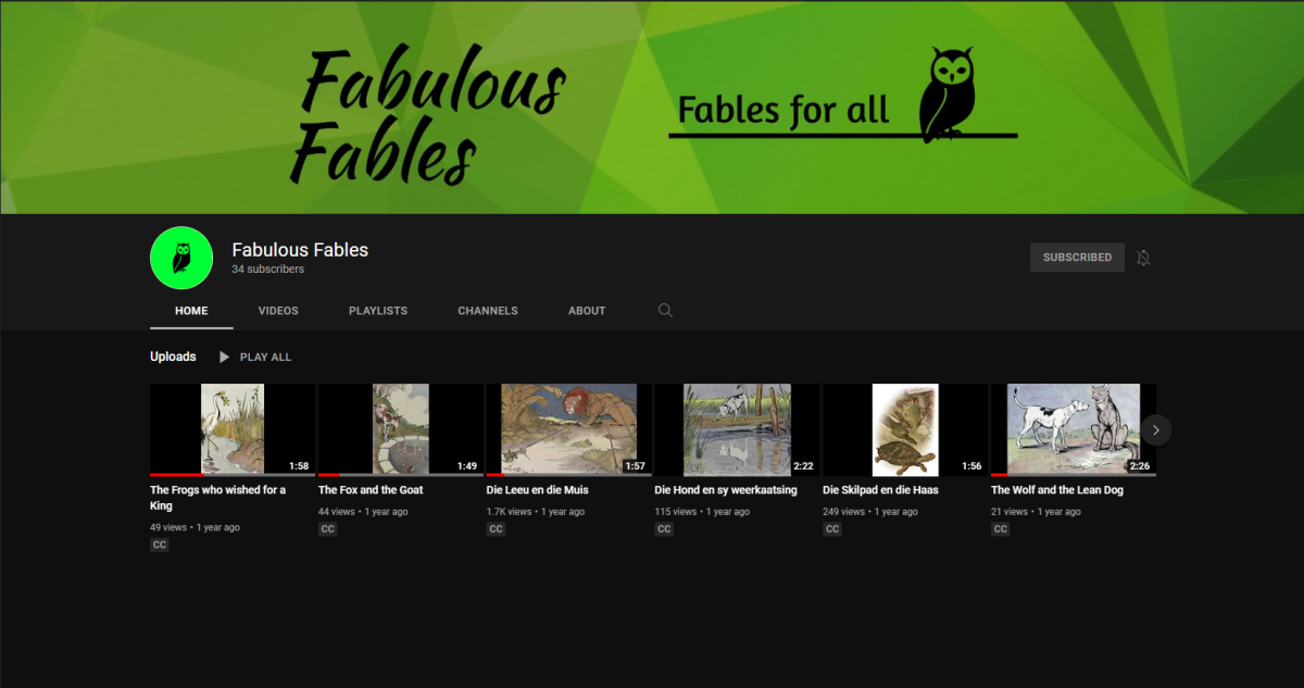 The YouTube channel didn't get many views at first. Some of the videos read in Afrikaans did really well, with one video getting nearly 1800 views. Altogether the channel accumulated over 4200 views.
