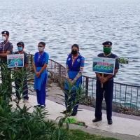 Under "Environmental Protection and Promotion Fortnight", Scouts / Guides gave the message of keeping the environment clean by creating a human chain with posters and banners.