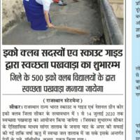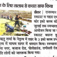 हम सीकर शहर में माधव सागर पिछले 5 दिन से साफ कर रहे हैं। हमने 1/07/2020 से 5/07/2020 अब तक हमने इस तालाब पर श्रमदान किया। हमारे साथ 10 लोगों ने इस तालाब पर करीबन 200 घंटे का श्रमदान किया है। हमने इसके अंदर से 3 ट्रोली कचरा निकाला है। हम इस तालाब को इसलिए स्वच्छ कर रहे हैं ,ताकि सीकर की आने वाली पीढियां भी इसे स्वच्छ देख सके। और ताकि लोग इधर घूमने व कई जानवर अपनी इससे प्यास बुझा सके । हम स्काउट और गाइड यही चाहते हैं कि आगे कोई भी इस तालाब को गंदा न करें। यह सीकर की एकमात्र ऐतिहासिक धरोहर है। इसे गंदा न करें। और न करने दे।
