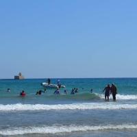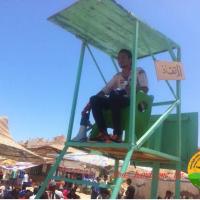 with control of The Association of divers and the Scouts volunteer on the beach to protect people from drowning Warning signs were also placed inside sea water to To warn people not to skip this Area