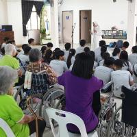 Organising MoP activities in conjunction of the month of World Peace Day. Bringing 2 classes of Form 4 secondary school students to spread the peace and joy to the residents. Students using their talents and skills to perform and entertain the residents with group singing, lion dance performances, orchestra and games. And also having Fellowship lunch with the residents.