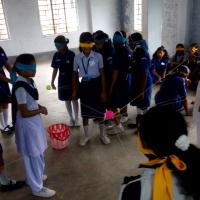 There was two days District Camp scheduled on 17th and 18th August, 2019 at Adarsha Balika Vidyalaya for the Scouts and Guides of Uluberia District Association. But torrential rain had started from the Friday, 16th. Everybody was upset but the Scouts, Guides, officials, school authorities and guardians proved that Scouting Guiding give us the strength to fight with disaster. Everybody was present and the camp started. The class rooms were surrounded with water. They had included all the parts of MoP promotional programmes in their routine. The guides of this district had won the peace award (an award on the programmes of MoP given at state level), they had some idea. But networking game, story telling, Ale Le Le song or MoP beat dance had created a magic. Almost 140 scouts and guides took part in it and now we are waiting to hear their stories.