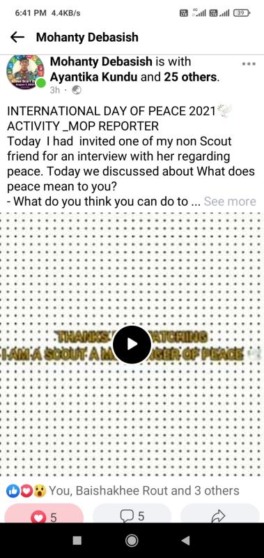 Today I had invited one of my non Scout friend for an interview with her regarding peace. Today we discussed about What does peace mean to you?