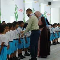 Mowgli is the name given to 'Pre-cubs' movement of Rehendhi School, Hulhumale', Maldives. The Mowglis was introduced laste year in 2017. Almost all the boys of Foundation Stage, UKG and Key Stage 1, Grade 1 boys wanted to join the program. Therefore a lot of new students wanted to join even this year. The parents, school management, leaders, Akelas and all the Mowgli students join this event. Badges and scarfs have been awarded by NSO, MoP Coordinator, Maldives Mr. Ibrahim Rasheed and the certificates have been awarded by the Deputy Principal of Rehendhi School, Mr. Ahmed Rameez. Parents were happy to see their kids wearing scarfs and badges.