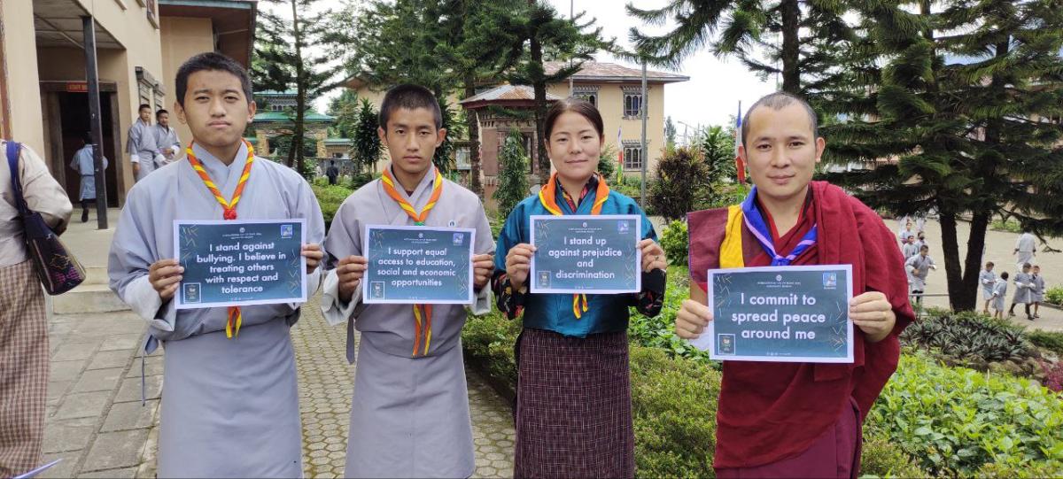 The project has taken place in the school and the community. The message from UN secretary general was read to all the class from PP-XII by the volunteered students and the class teachers .The plantation of fruit trees was carried by school scout commissioners in the school campus. The banners and different poster were displayed on the school building walls. The pledges were snapped and uploaded in the face book page for the society.