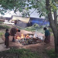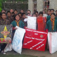 On 4th June coinciding with her majesty birthday I did cleaning campaign with class six students around the boys hostel till lhabab chorten. The students picked up the trashes around the hostel and they have also created awareness to the people residing nearby. We have prepared a banner "My waste our responsibility" The campaigns main aim is to encourage individual responsibilities among the students as well as the residents of Tsenkharla central school.