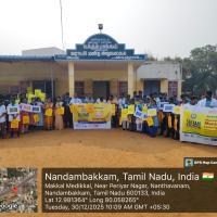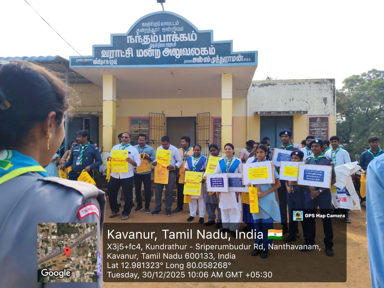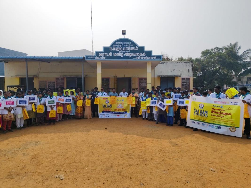 The inspiration for starting this project in Nandhambakkam village came from witnessing the harmful impact of single-use plastics on local streets, farms and water bodies, and the desire to revive the traditional manjappai culture while empowering villagers especially students and women to lead a sustainable, plastic-free lifestyle through collective community action and awareness programs