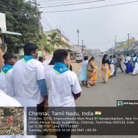 The project was executed with strong support from the village president and local communities through joint mobilization meetings, distributing eco-friendly cloth bags (manjappai) to households and shops, conducting awareness campaigns on plastic pollution, organizing student-led rallies and street plays, establishing waste collection points, training local women in manjappai production, and implementing plastic-free zones with community enforcement.