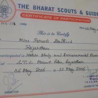 6 से 11 मई 2006 तक STC mount abu,Rajasthan में आयोजित प्रकृति अध्ययन और पर्यावरणीय फ़्लारनेस में भाग लिया मेने प्रकृति के बारे मे जाने व पेड पौधों की जानकारी ली मध्य रात्रि काल मे ट्रेकिंग का भी आनंद लिया और विभिन्न जानवरों की भी जानकारी प्राप्त की। & प्रकृति अध्ययन शिविर bs & g NHQ se Miss kumud mehra ROC G नेतृत्व में शिविर का लाभ उठाया