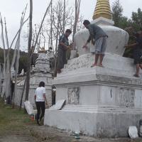 Sherubtse Rover Scout has participated in rendering help to the draktshang (temple) near by in white washing the Chortoens (stupa)