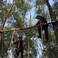 Obstacles included tire passing, spider net, climbing, rope monkey bridge, aerial runway etc.
