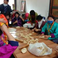 Offering of plastic free Tshok( Locally made Biscuit) during School Rimdo(annual ritual).