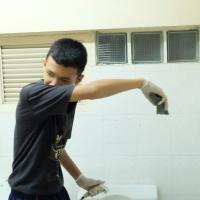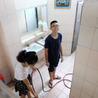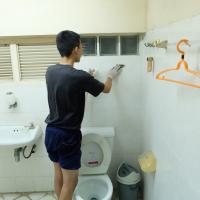 กองร้อยพิเศษโรงเรียนวัดราชาธิวาส ล้างห้องน้ำในโรงเรียน โครงการจิตอาสาทำความสะอาด ปรับภูมิทัศน์ในสถานศึกษา