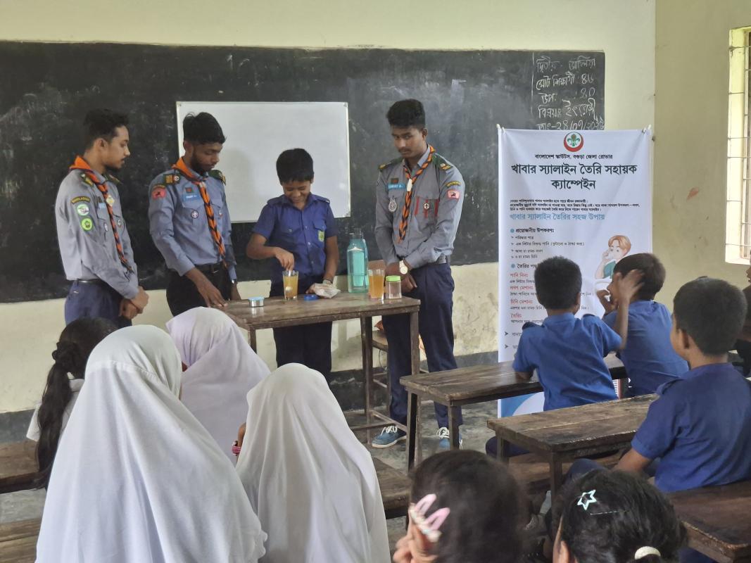 On 21-07-2025 10 members of Bogura Polytechnic Institute Rover Scout Group organized an Oral Saline Preparation Support Campaign at Colony, Bogura Sadar.The team demonstrated how to prepare oral saline properly and distributed leaflets and pre-packed saline sachets among the locals.This awareness program aimed to equip the community with essential life-saving knowledge. A pinch of salt and sugar—simple steps that can save lives.