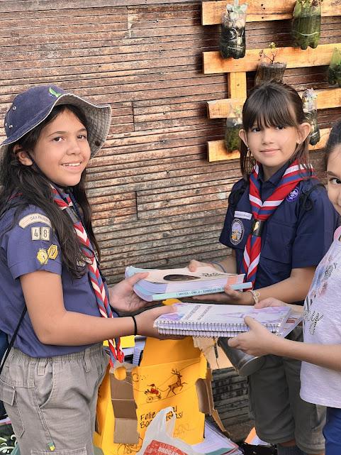 Perceber que nós estudantes, a cada ano escolar, vamos acumulando livros, cadernos e folhas que não utilizaremos mais, e isso pode ser transformado em recursos para comprarmos material para a Alcateia realizar os jogos com os lobinhos : bexigas, cones e bambolês.