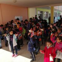 at the end we distribute a snack and some clothes for students.