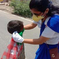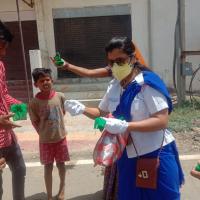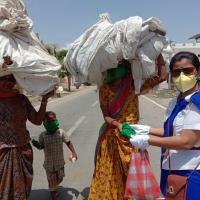 पाली में आम जन को सुरक्षित रखने के लिए मास्क बाटती स्काउट गाइड केप्टन जयलता माधव