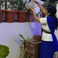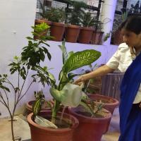 पौधों को पानी पिलाती स्काउट गाइड केप्टन जयलता माधव