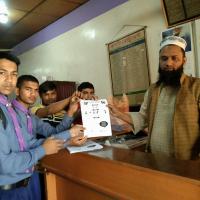 পীরগঞ্জে করোনায় লিফলেট বিতরণ।