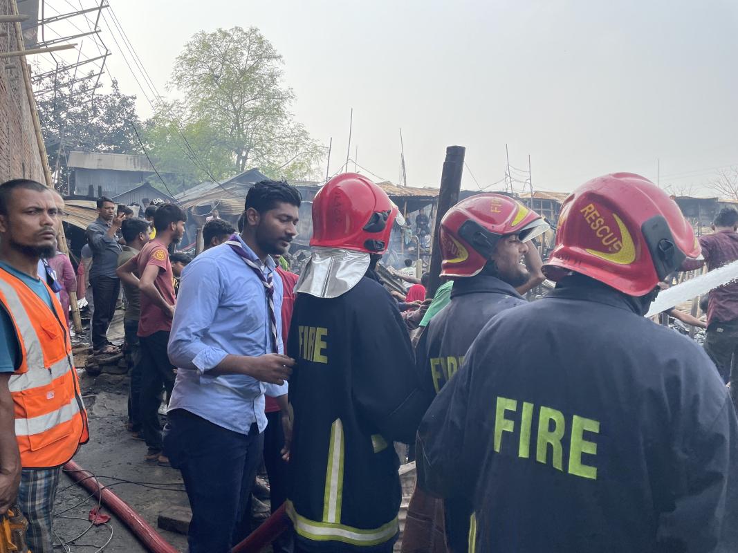 পল্লবী ঝিলপাড় বস্তিতে অগ্নি নিবারণে সহায়তা।