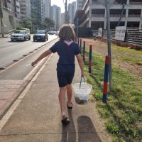 Em Brasília, há pontos de coleta de tampas plásticas e pilhas. Minha mãe já havia levado as tampinhas que tinha em casa para o ponto de coleta. Então, escolhi construir um coletor para as pilhas.