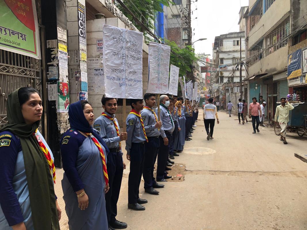 বিদ্যুৎ ও জালানী ব্যবহার এ সাশ্রয়ে হই। সবুজ পরিবেশের জন্য বৃক্ষ রোপন করি। প্লাস্টিক বজ্য অপসরন সহ, বজ্য মুক্ত পরিবেশ গড়তে সহায়তা করি এ স্লোগান ও ব্যানার নিয়ে সাধারন মানুষদের সচেতন করি,আমাদের সাথে আরো যুক্ত ছিল আমাদের স্কাউট লিডার গন।