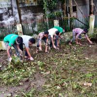 সকাল ১১ টায় ঝোপঝাড়,শুকানো লাকড়ির জায়গা দুপুর ১২ টায় হয়ে উঠে পরিচ্ছন্ন শহীদ মিনার প্রাঙ্গণ।