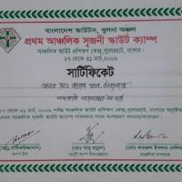 গত ২৭/০৩/২০০৬ ইং তারিখ হতে ৩১/০৩/২০০৬ ইং তারিখ পর্যন্ত, বাংলাদেশ স্কাউটস, খুলনা অঞ্চল এর প্রোগাম বিভাগের পরিচালনায় অনুষ্ঠিত হয়। প্রথম আঞ্চলিক সৃজনী স্কাউট ক্যাম্প স্থানঃ আঞ্চলিক স্কাউট প্রশিক্ষণ কেন্দ্র, পুলেরহাট, যশোর। উক্ত ক্যাম্পে আমাকে সহকারী সাজসজ্জা ইন চার্জ করার জন্য ক্যাম্প পরিচালনা কমিটি কে জানাই আন্তারিক শুছেচ্ছ।
