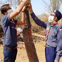 In Our unit leader 's guidance , we collected empty plastic cans from the people of our town shape them like parinda for the birds and put in different areas of the town with the support of police staff and our scout fellows.