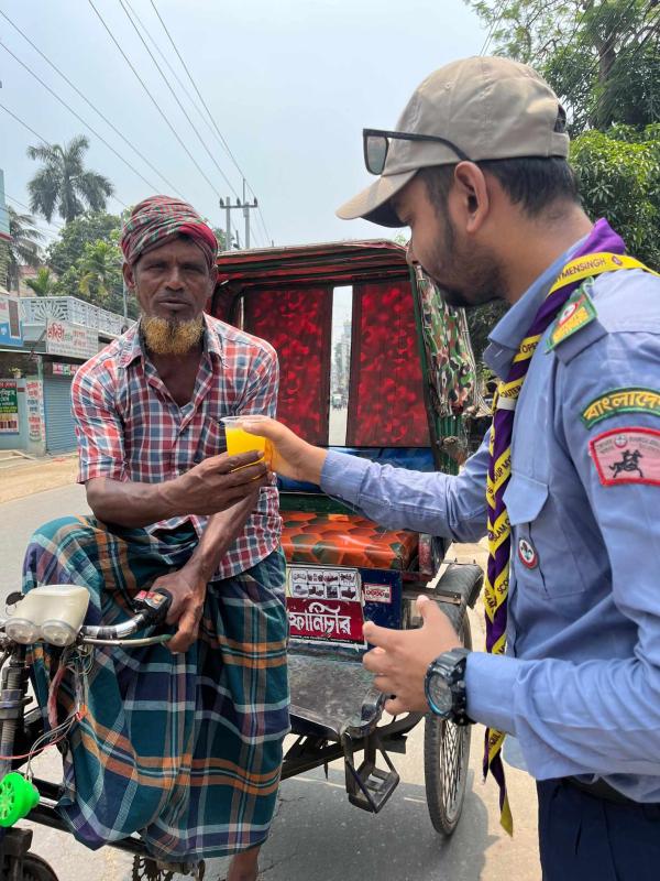 তীব্র গরম ও দাবদাহে অতিষ্ট জীবনে সাময়িক আরামের জন্য ময়মনসিংহের স্কাউটার রফিকুল ইসলাম ওপেন স্কাউট গ্রুপের স্কাউট ও রোভার সদস্যগণ শুক্রবার কয়েকটি স্পটে ময়মনসিংহে আগত বিসিএস পরীক্ষার্থী, অপেক্ষমান অভিভাবক ও পথচারীদের বিনামুল্যে ঠান্ডা পানি ও সরবত বিতরন করে।