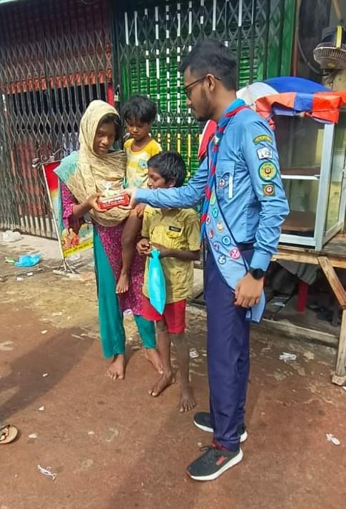 আমাদের দেশের পথশিশুদের সংখ্যা নেহাত কম নয়। ইউনিট লিডারের অনুমতিক্রমে গত ৮ ও ৯ সেপ্টেম্বর ২০২২ তারিখে শহরের পঞ্চাশজন পথশিশুদের জন্য রান্না করা খাবার ও নতুন জামা বিতরন করা হয়। স্কাউট সামী আল জাবির মাহিন এর এ কাজে সকলেই প্রশংসা করে।