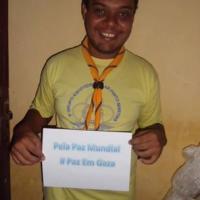 Principais Agentes: Marcos Clayton Fernandes Pessoa - Registro Escoteiro Número: 855780-2 Maria Victória Alves de Mesquita Pessoa - Registro Escoteiro Número: 854588-0 LUCINEIDE MARQUES FERNANDES - Registro Escoteiro Número: 894314-1 Vou também fazer parte nessa luta. Vamos apoiar nossos irmãos escoteiros e os demais que moram em Gaza, que neste momento estão passando por uma situação bem complicada. Então compartilho esse movimento que já esta rolando em outros países e é uma maneira de demonstrar nosso apoio por eles. Tire uma foto com o traje ou vestuário escoteiro segurando uma plaquinha com uma frase de paz e logo em seguida use o #PazemGaza. Compartilhe você também dessa ideia e não esqueça de marcar seus amigos: vamos juntos construir um mundo melhor! #scouts