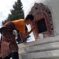 A total of ten scouts, two scout leaders and six teachers started white washing the chorten and cleaning the chorten area located above Mongar LSS from 9am till 4pm on 10th Feb.