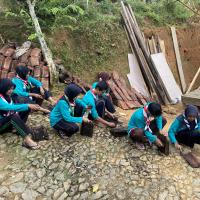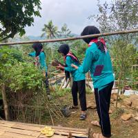 6 hari disana kita terbagi menjadi beberapa bagian ada yang memasak ada yang membersihkan genteng ada juga yang bergotong royong mengangkat bahan bangunan berupa batako, semen dll