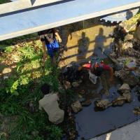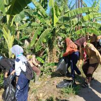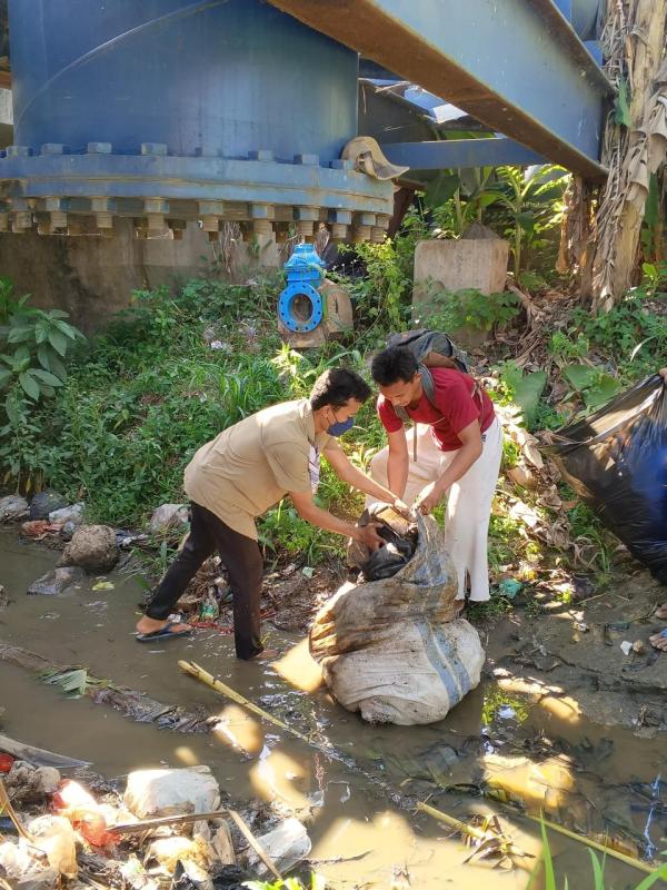 Pembersihan sungai dari sampah di desa Merak Batin