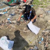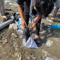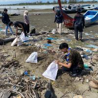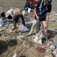 Melihat rusaknya pantai dikarenakan banyaknya sampah platstik, jadi saya mengajak teman teman lainya untuk mengutip sampah plastik, agar sampah plastik berkurang dan pantai terlihat lebih bersih.