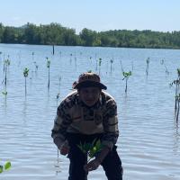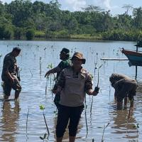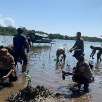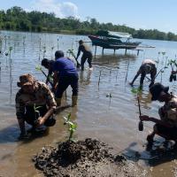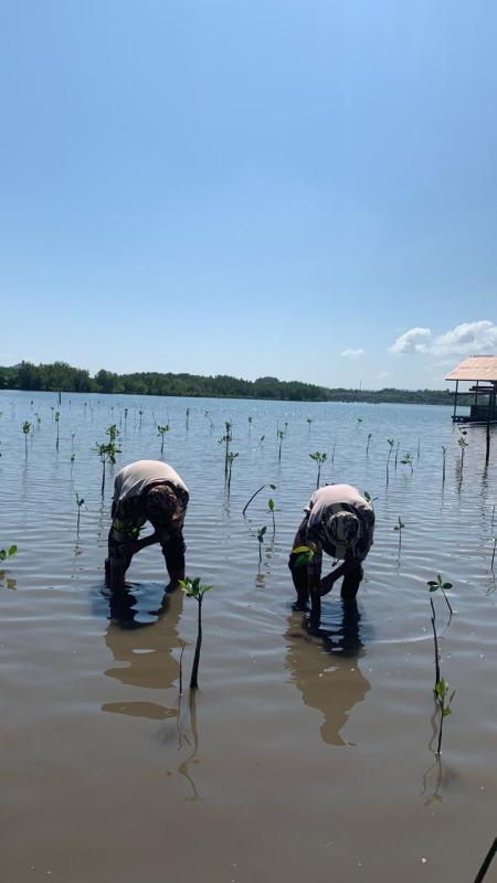 Kami berkerjasama dengan TNI AL dalam melaksanakan proyek penanaman bakau untuk melestarikan hutan mangrove dan mengurangi abrasi pantai