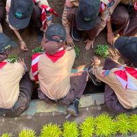 Projek ini kami lakukan bersama 18 orang Pramuka, kami melakukan projek sosial ini dengan cara menambah bibit sederhana di lingkungan sekolah kami. Kami menanam bibit sederhana sebanyak 30 buah bibit lebih. Kami menanam bibit tersebut di lahan yang kosong, bapak dan ibu guru kami juga ikut serta membantu dalam kegiatan ini. Untuk hari selanjutnya, setelah kami menanam, kami rutin menyirami tanaman tersebut 1 hari 2 kali, yaitu di pagi dan sore hari.