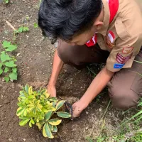 Penanaman ini dilaksanakan dengan mengajak teman sebaya penggalang untuk aksi" tanam bareng".