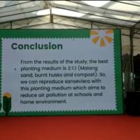 Dengan melakukan penelitian ini kita mengetahui media tanam yang lebih tepat sehingga kita bisa menanam sansevieria dengan lebih baik, serta memperbanyak penanaman tanaman ini agar memperoleh manfaat yang lebih yaitu udara dilingkungan sekolah lebih bersih dari polusi udara.
