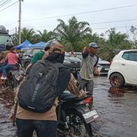 Kami Pramuka Peduli Kwarcab Pelalawan Bersama Kepolisian, BPBD, Dan Dishub Kab. Pelalawan Membantu Masyarakat Yang Ingin Melewati Jalan Yang Tergenang Banjir
